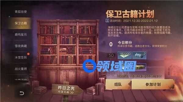 2021年12月30日至2022年1月12日,三系熟练度15级以上的幸存者可在活动时间内8人组队,前往密斯卡园区图书馆拯救珍贵书籍与画布碎片带回贸易联盟;珍贵书籍可换成积分达到一定值可获得奖励;画布碎片可对世界名画进行修复,修复后可查阅该画的作者与背景,当修复世界名画到达一定数量时将会通过邮件获得奖励;