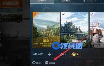首先我们要寻找入口位置,游戏的首页界面左上角可以选择游戏的模式,玩家可以在这里点开游戏模式选择的页面,在这个页面的最下方会有一个训练场。