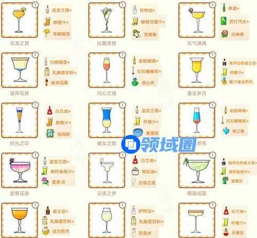 2、酒库图鉴共包含15种【手调酒饮】+5种【种族特调酒饮】