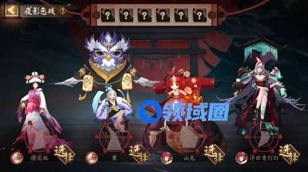 简化版的夜行荒河玩法,选择六个式神上阵五个式神,七种加成中随机获取三个加成,战斗时在三个加成里选择一个