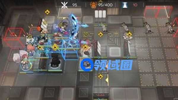 桃金娘上方补个近卫或者强力先锋,这里图省事直接放的风笛,最后补个奶妈即可,红蒂这个位置可以部署闪灵冲右侧奶人,如果你觉得棘刺有危险,可以在图中闪灵的位置额外补个奶妈冲上攻击奶住棘刺。