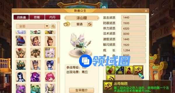 2、涂山瞳,稀有宠。出战等级105级,拥有5个天赋技能:高级慧根,进击法爆、高级否定信仰、出奇制胜、高级法术波动。高级慧根、进击法爆为必带技能。