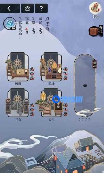 点墨斋是未定事件簿新活动飞雪落红尘中开放的最新活动关卡,其中显示有5个锦囊可供玩家收集。