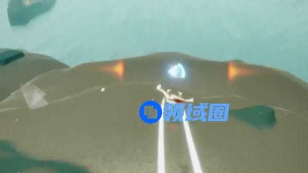 进入新地图后,越过正前方山洞能够看到一条小船,小船上的就是此次深海季的向导先祖。