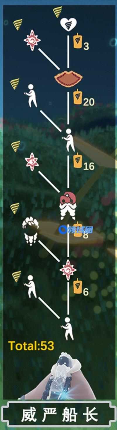 中心小船右侧(靠近地图入口侧)岸边可以找到威严船长先祖。