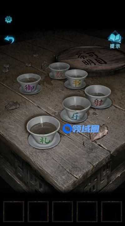 5、将香灰水倒入院子中桌子上的茶杯得到礼乐射御书数的线索