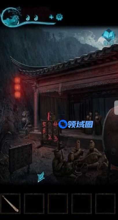 下来去后面的庙看文字,拿到陶俑身上的断剑,根据顺序敲甲乙丙丁架子,然后看文字记好演奏顺序。