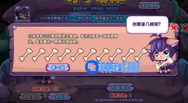 小游戏环节很简单,拿骨头,总共有10个骨头,自己先拿1个,之后如果博伊斯拿1根,自己就拿2根,如果它拿两根,自己就拿一根,就能够确保自己拿到最后一根骨头获胜,还是很简单的。