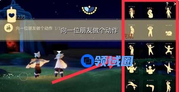 进入游戏找到一位好友玩家,面对好友,点击界面上面的光翼出现动作,任意点击一个动作完成即可完成该任务;