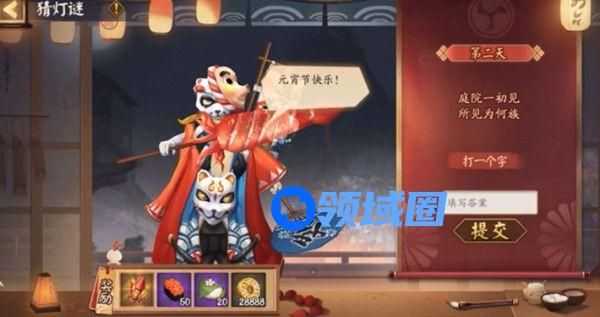 今天阴阳师元宵活动猜灯谜玩法给出的新的谜面是:庭院一初见,所见为何族(打一个字)