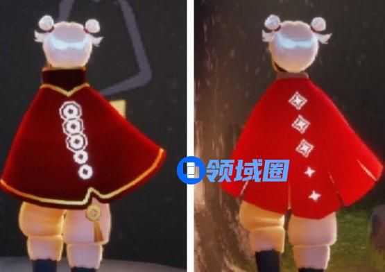 这个斗篷和其他斗篷稍有些不同,是镶着金边的,胸前还有一个铜钱标志,而且是中式立领,很有春节的氛围。