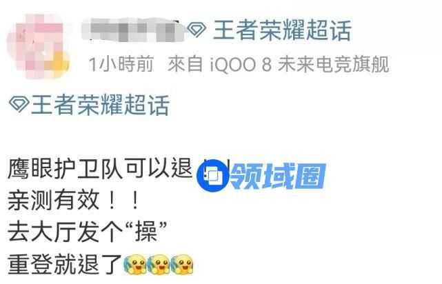 另外也有玩家实践出了其他退出鹰眼护卫队的方法,例如在大厅中发布不良字样,如“加我看猪八戒洗澡”“cao”就可以退出,但是这种方式很容易被禁言,要小心操作,另外一种方法就是在个人的主页中,双击护卫队的标签即可,大家也可以去试试这种方法。