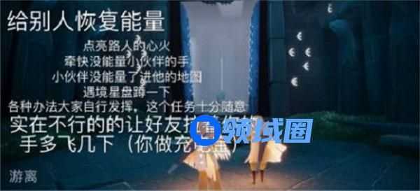 传递能量这个任务已经出现过不止一次了,每日任务基本上都不怎么难,玩家要找到一位好友,这位玩家一定要是快没有能量的,然后和对方手拉着手一起进入地图,到云野点无翼。