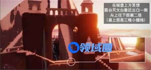 紧接着就是最后的冥想任务,今天需要玩家到霞光城上层完成这个任务,到了霞光城的主体建筑之后,玩家可以天文台靠近出口一侧,然后从上面往下面数,找到第二层就可以看到石碑前有一个光圈,在光圈里面打坐留言就可以了。