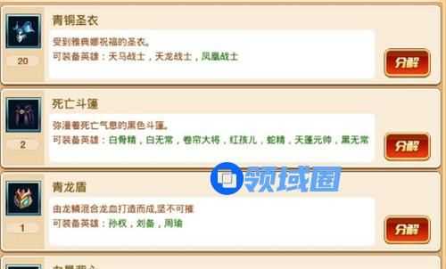 不一样的英雄防具也不一样,这样的设计无疑大大的增加了防具的获取难度,因为你抽出来的防具不一定是你需要的,不过不要灰心,因为进阶是需要防具分解的材料的。