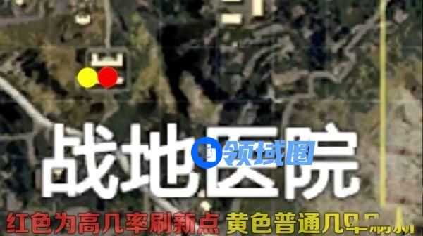 2、在医院中有两个军火库刷新地点,都在靠近南面的楼里,红色为高概率刷新点,黄色为普通概率刷新点;