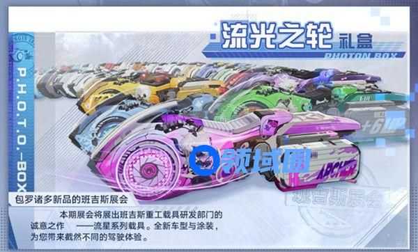 Tip2:活动期间,商城限时上架「流光之轮礼盒」,开启礼盒概率获得流星系列载具涂装、新外观、展会礼券、赤核、金核、特种凭证、检索凭证、晶簇、金币等多种道具。