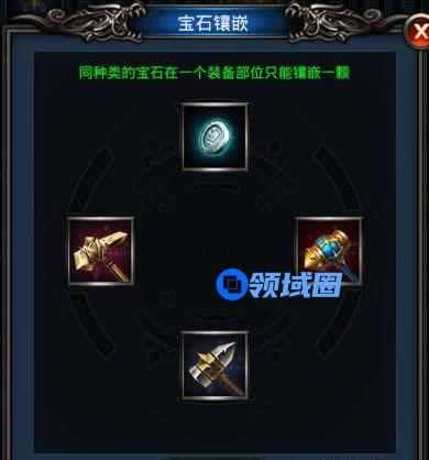 每个装备部位有4个未开启的宝石孔,分别消耗不同的道具(银币,铜锤,银锤,金锤)开启,别具一格!