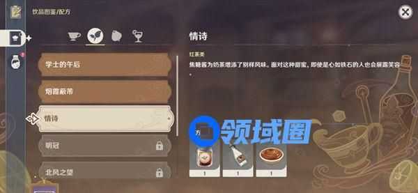 情诗的配方是红茶*1+牛奶+*1焦糖酱*1,不过如果玩家按照这个配方来制作,是不满足要求,无法完成的。