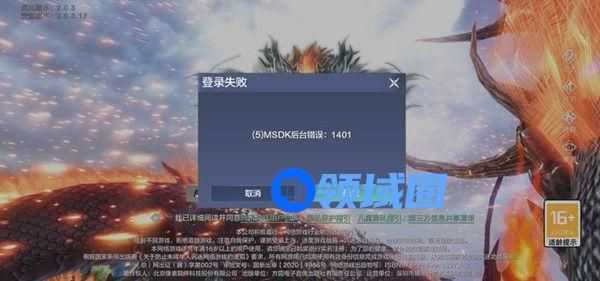 玩家们在游玩的时候突然提示登录失败:“MSDK后台错误:1401”,甚至本来在线的也被突然踢出游戏了。