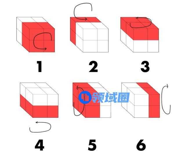 然后手牌中的6张卡从左到右分别对应了下图的操作,即对应面逆时针旋转90度