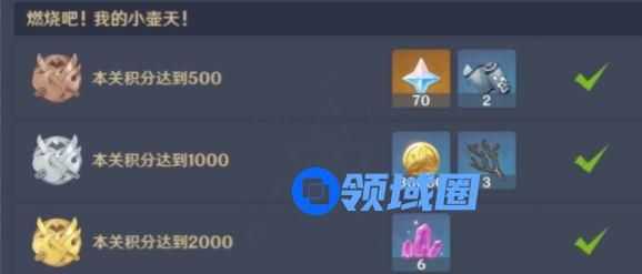 ● 在限制时间内,切换队伍击败敌人以赢得积分。每个关卡达到指定最高积分可获得原石、天赋培养素材、武器突破素材、精锻用魔矿、摩拉等奖励。