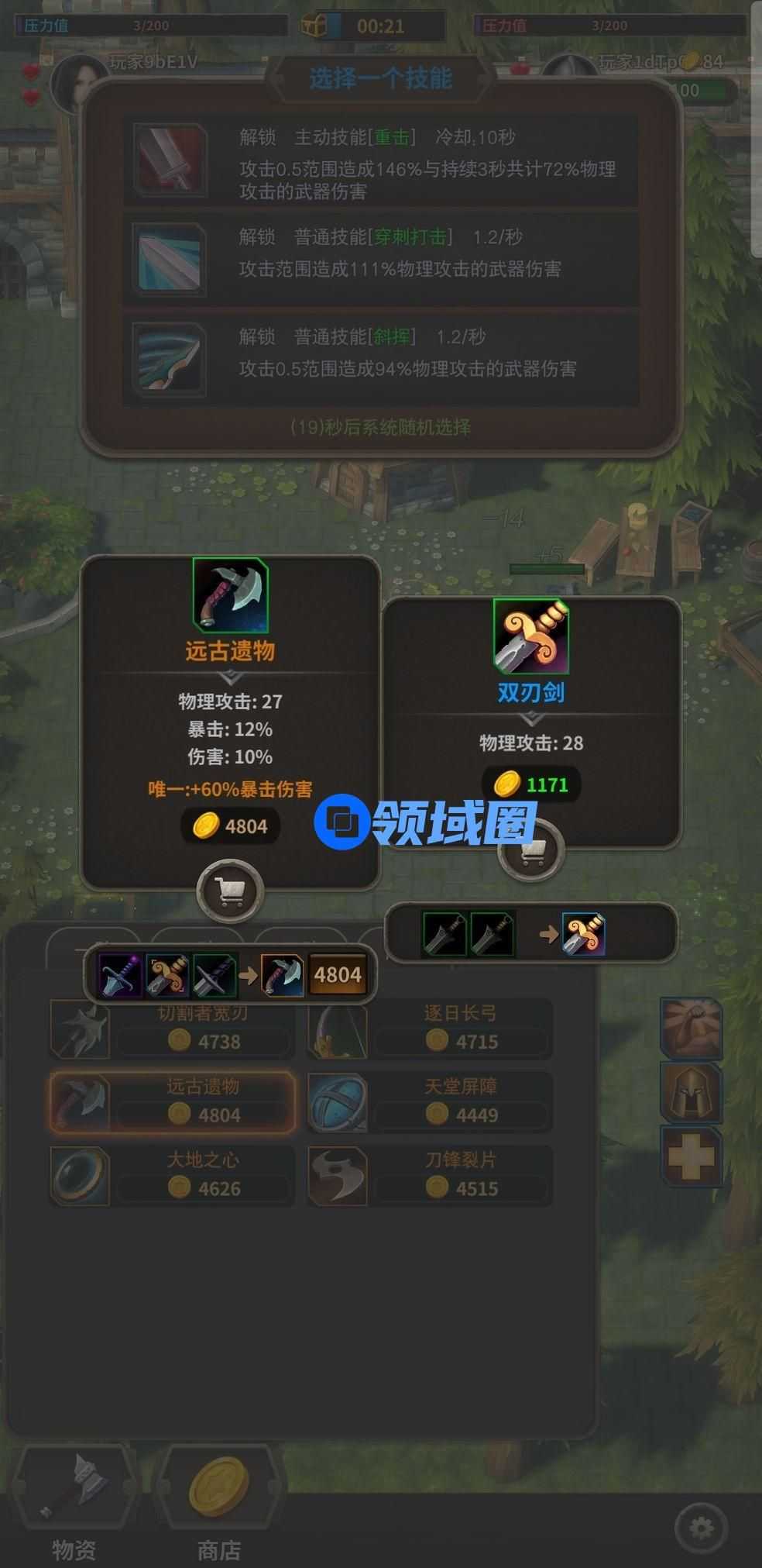 进入游戏:主要是装备和技能,人物几乎不需要操作。装备方面,分为五等装备,装备之间采用的是合成进化的方式。