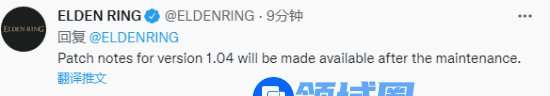 在该次维护结束后将更新《艾尔登法环》的1.04版本补丁,不过1.04版本的补丁说明尚未公布,官方确认补丁说明将在维护结束后提供。