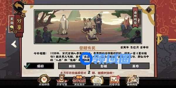 诗句原文就直接提到了项羽,所以这次题目的答案显然就该选择项羽了,还是非常简单的。