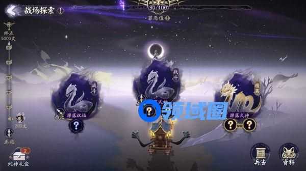 选择方位并战胜道路上的蛇魔将获得1个「欲望之钥」及对应的祝福、印记式神或「补给」