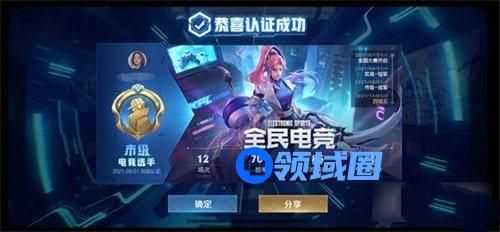 我们只要拥有了市级选手徽章就可以成为荣誉选手了,想要开启这个电竞选手认证,需要打全民电竞的全国大赛;