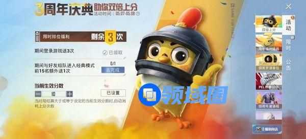 和平精英三周年双倍上分活动介绍: