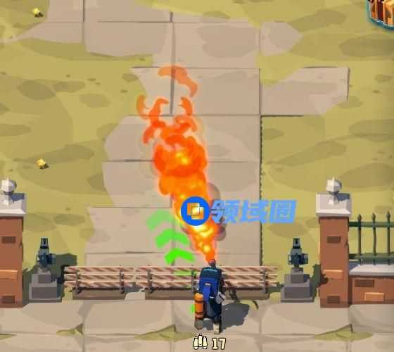 操作喷火器时,只需要长按想要攻击方向的地面即可开火;长按的过程中缓慢滑动手指,则喷火器的开火方向也会随之改变。