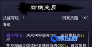 变身技能效果:变身期间,提升法术伤害,灵蕴值回复速度极速提升。变身持续30秒。