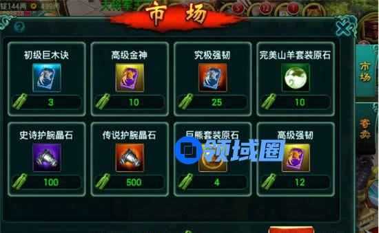 在市场中可进行购买到其他玩家寄售的道具。市场每天凌晨5点会自动进行1次刷新,另外玩家每天有一定次数刷新市场的机会。购买方式:
