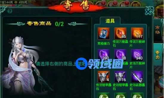 打开后可查看到市场、寄售两个功能。下面分别介绍两个功能的使用方法: