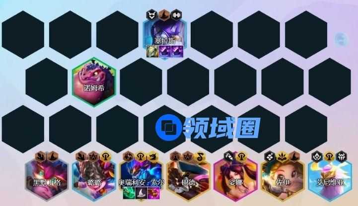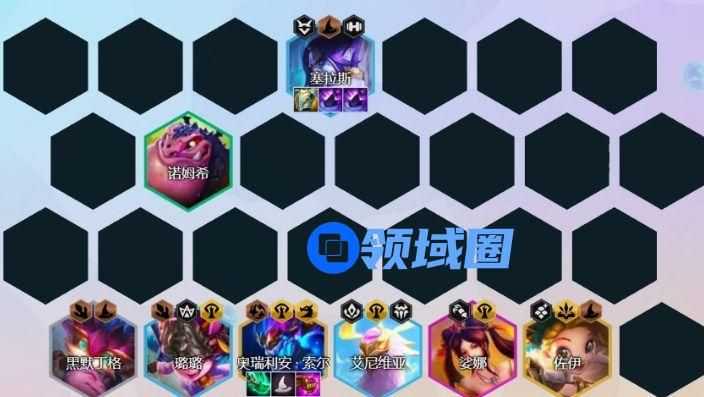 阵容组成:黑默丁格、塞拉斯、璐璐艾尼维亚、娑娜、索尔、佐伊、巴德