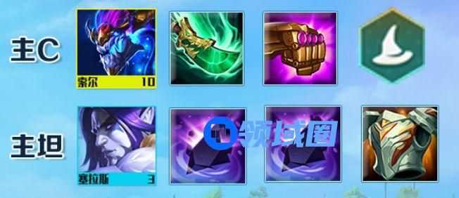 阵容运营:这是一套以索尔为核心的阵容体系,而索尔是属于10费卡,需要到8/9人口才能够找到,因此前期需要连胜运营过渡。