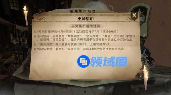 巫师集市上将开设「高礼帽巫师的魔药摊」、「独眼巫师的杂货铺」等摊位,同学们可使用“福灵贝壳”兑换相关物品(包括精美头像框、传说卡牌、趣味外观、“染发魔药-妙妙染发灵”材料、“晴空麦浪折扣券”等)