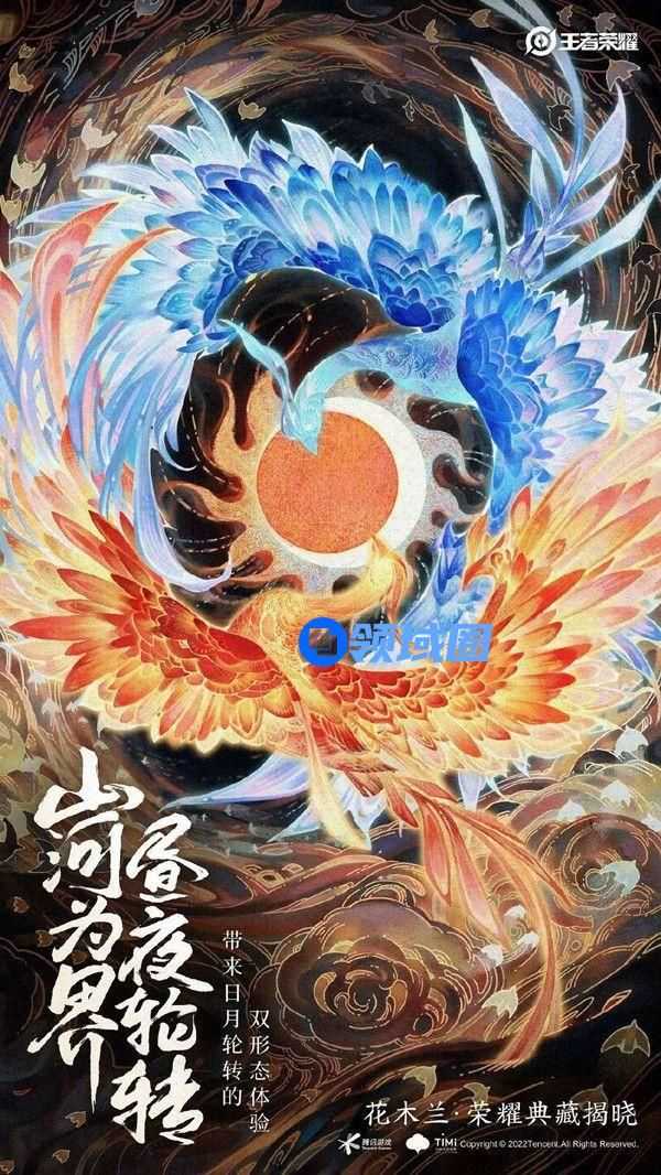 2:如图所示,下面两个图就是花木兰的出场特效了,有点凤求凰的感觉,同时这个皮肤会用两个是属性的,一个是冰凤凰还有一个是火凤凰,两种形态进行切换的,不过这个也在预料之中,毕竟花木兰的大招就是切换形态的;