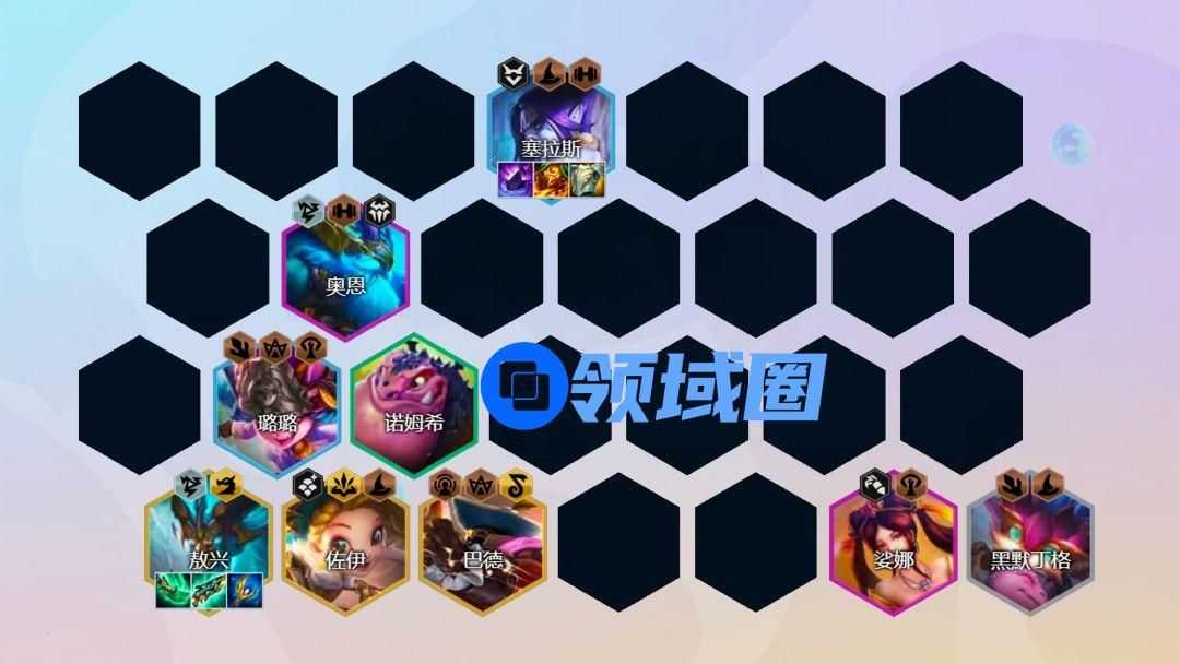 阵容组成:黑默丁格、璐璐、塞拉斯、奥恩、娑娜、巴德、敖兴