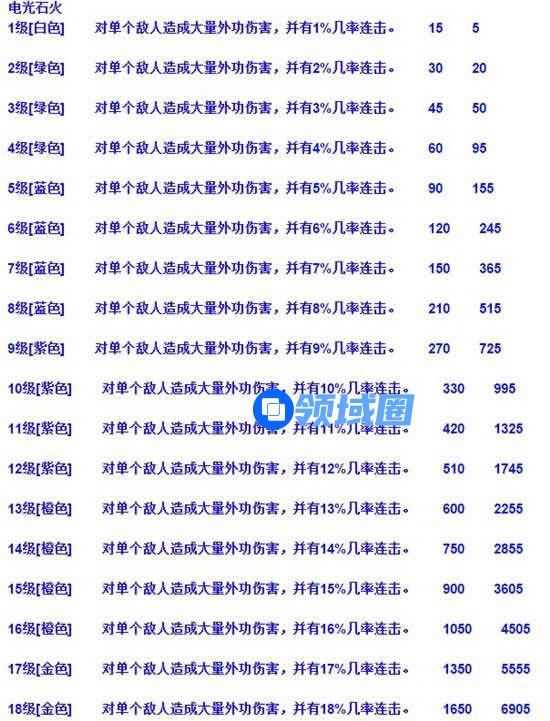 技能名称-技能等级-技能效果-升级经验-提供经验之间的关系如下表: