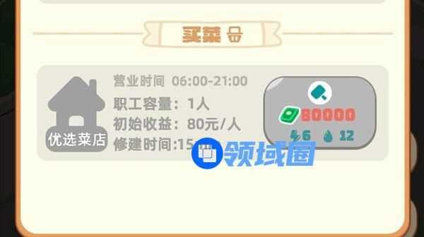 菜店是满足房客买菜的需求的,而根据招募到的房客的不同,买菜的需求也是不一样的。买菜需求高的住户建议玩家手动安排到离菜店较近的位置。