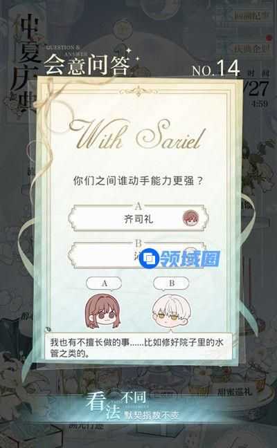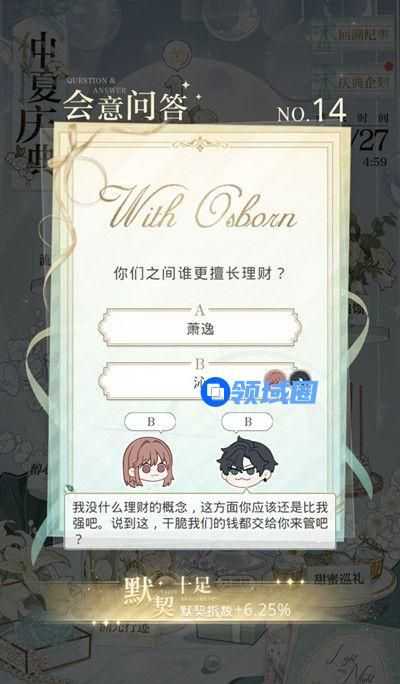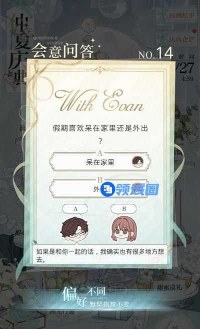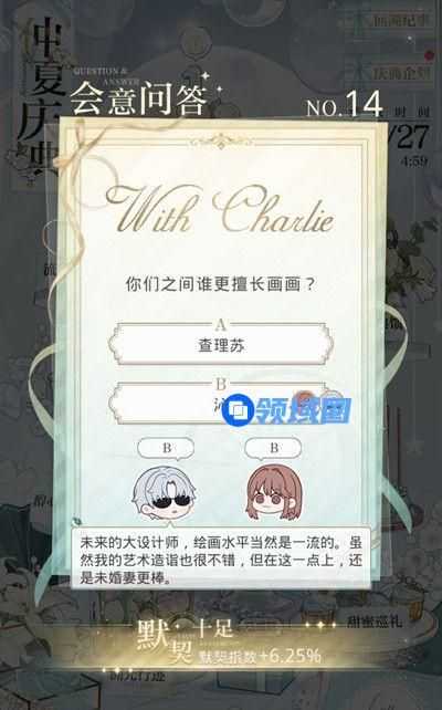 活动说明:不知不觉,与他并肩同行已有一年,和他的默契程度是否有所增加?在【会意问答】中测试一下吧!每位男主各有16道问答题目,活动期间每日凌晨5点更新当日题目,完成全部16道问答,即可get你们的最终默契指数!
