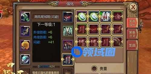 相对比,套装提升了全套装备的等级和品质,装备不但可以强化,还可以吸收低级和多余的装备增加属性。装备注灵是为装备注入灵石,进而提升装备属性。镶嵌龙晶则是通过镶嵌龙晶宝石来增加装备属性。游戏过程中完成任务或挑战活动副本都有机会获得灵石和龙晶。