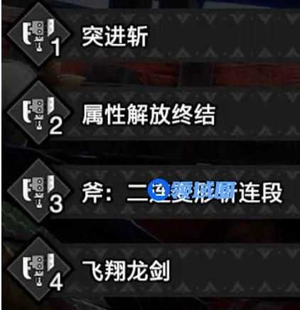1号位突进斩和突进直斩,熟练的情况下突进直斩更好用;突进斩掏刀快,搭配斩击充能,在剑槽能量不够用时快速回复。当然一般也不用,二连变形斩回复的就够了
