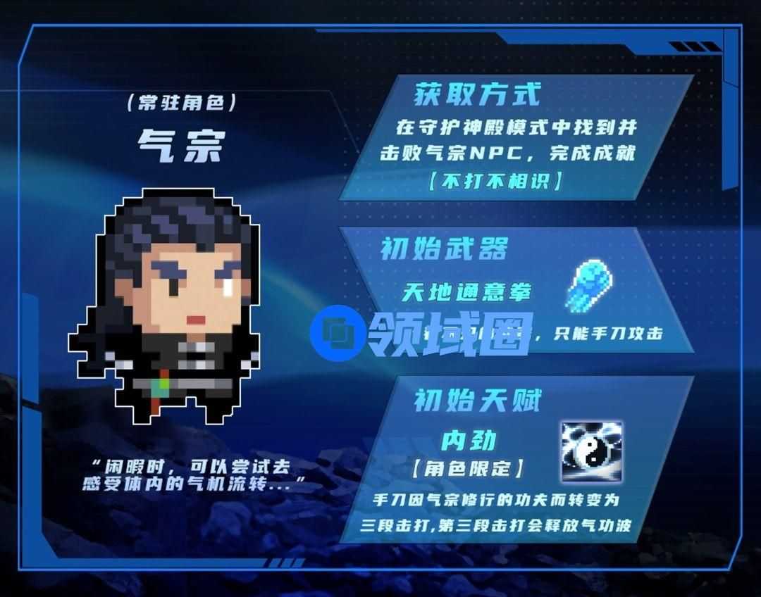 气宗不仅本身实力强劲,还乐于帮助他人。解锁气宗后,当使用其他角色在地牢里与NPC气宗交互时,他会为你注入内力加持: