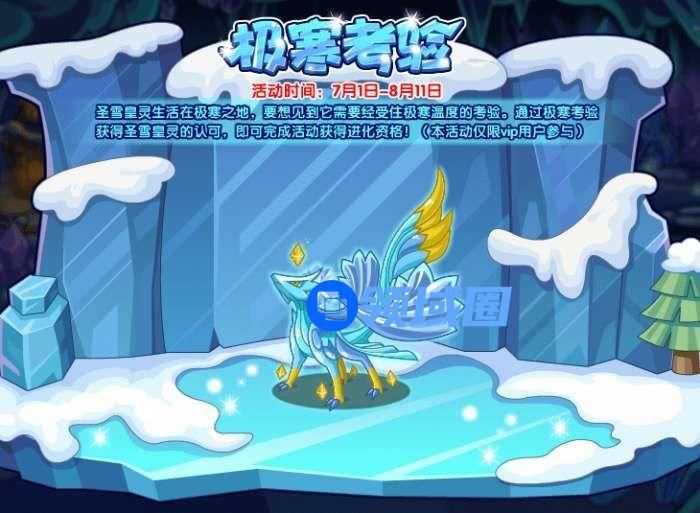 圣雪皇灵生活在极寒之地,要想见到它需要经受住极寒温度的考验。通过极寒考验获得圣雪皇灵的认可,即可完成活动获得进化资格!(本活动仅限vip用户参与)