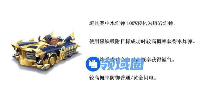 除了拥有强大的攻击力和实用的联动能力之外,熔岩也有着出色的闪电防御能力。值得一提的是,这是迄今为止首台具备概率防御黄金闪电能力的道具赛车!在当前道具环境下,优秀的闪电防御能力使得熔岩无论是前期掩护还是终点前的绝地冲刺反超,都有着极为出色的表现!