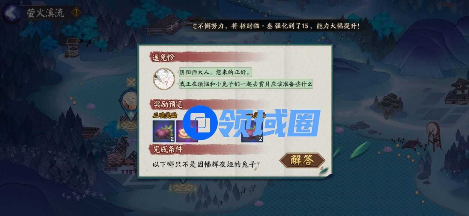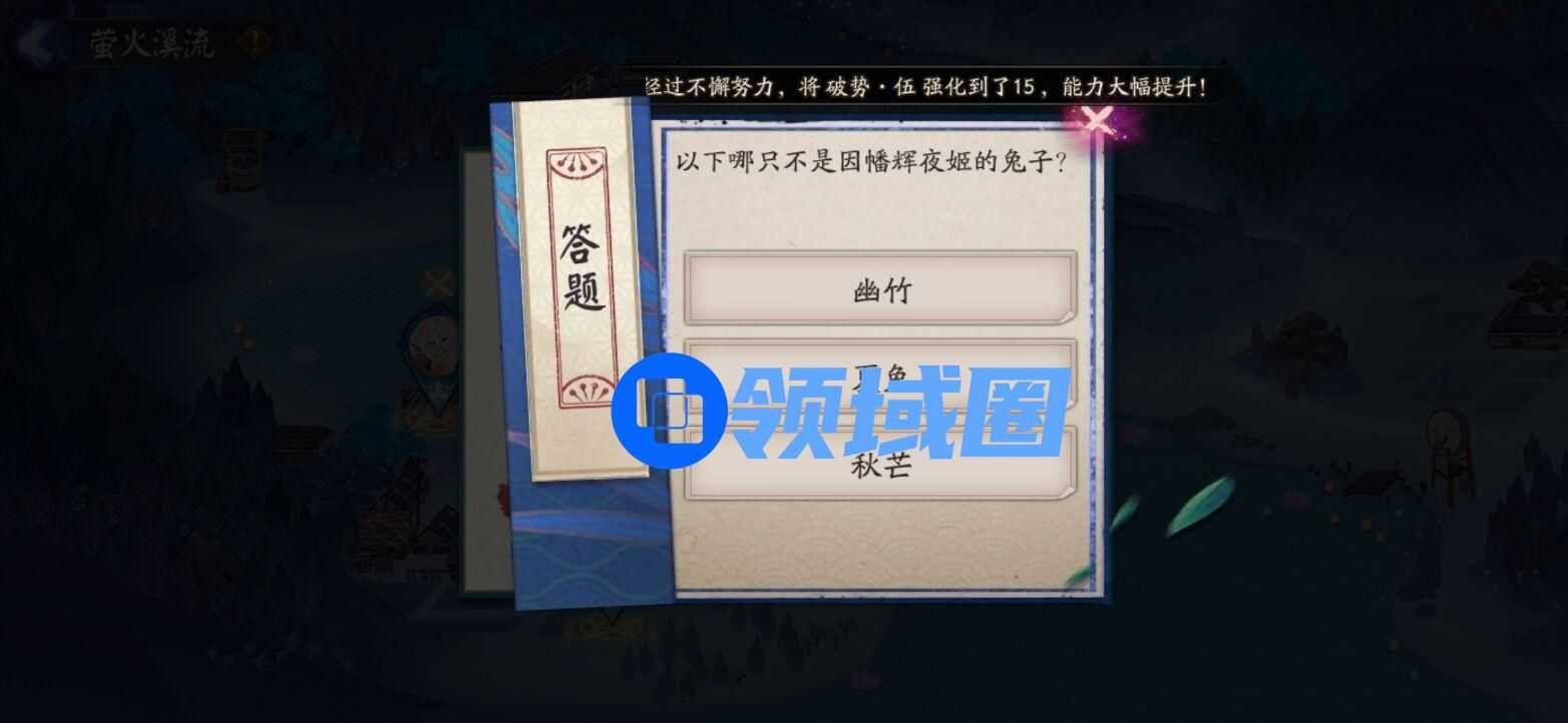 1、7.15萤火溪流问题:以下那只不是因幡辉夜姬的兔子?